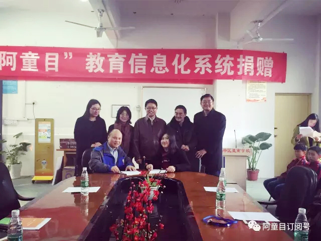 在民辦教育協會領導和胥口鎮鎮政府領導的見證下,藏南學校許校長和江蘇童訊科技有限公司的楊總簽訂了捐贈協議,“阿童目”免費為藏南學校提供智能教育管理系統和安防系統,并且終身免費維護。